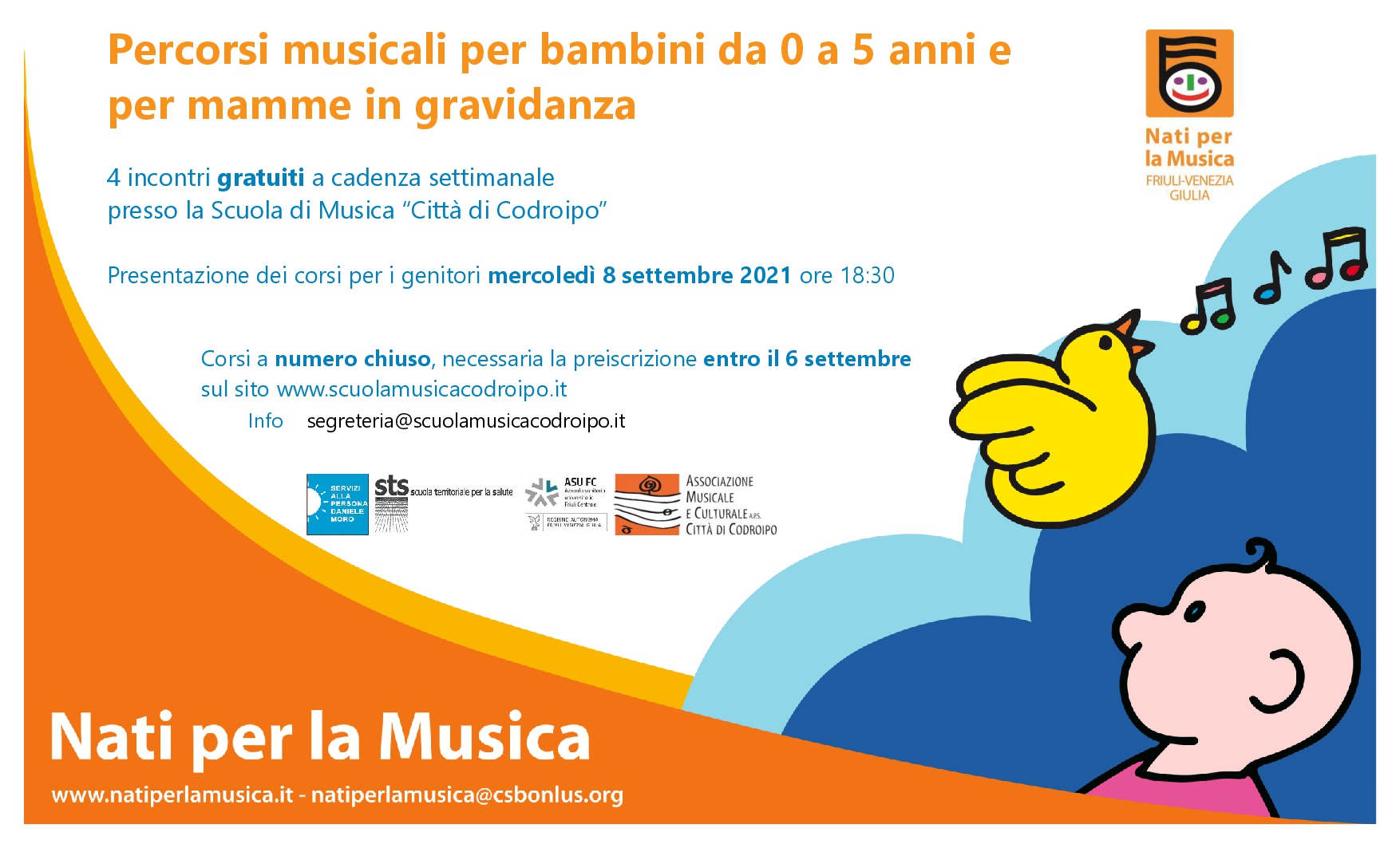 Per informazioni: segreteria@scuolamusicacodroipo.it