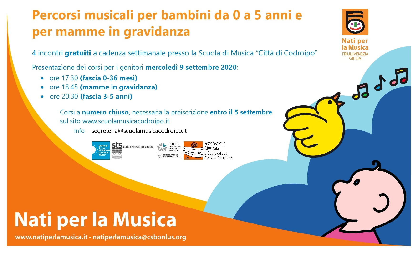 Per informazioni: segreteria@scuolamusicacodroipo.it