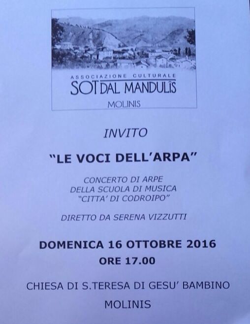 DOMENICA 16 OTTOBRE ORE 17.00 – ORCHESTRA D’ARPE A MOLINIS (TARCENTO)