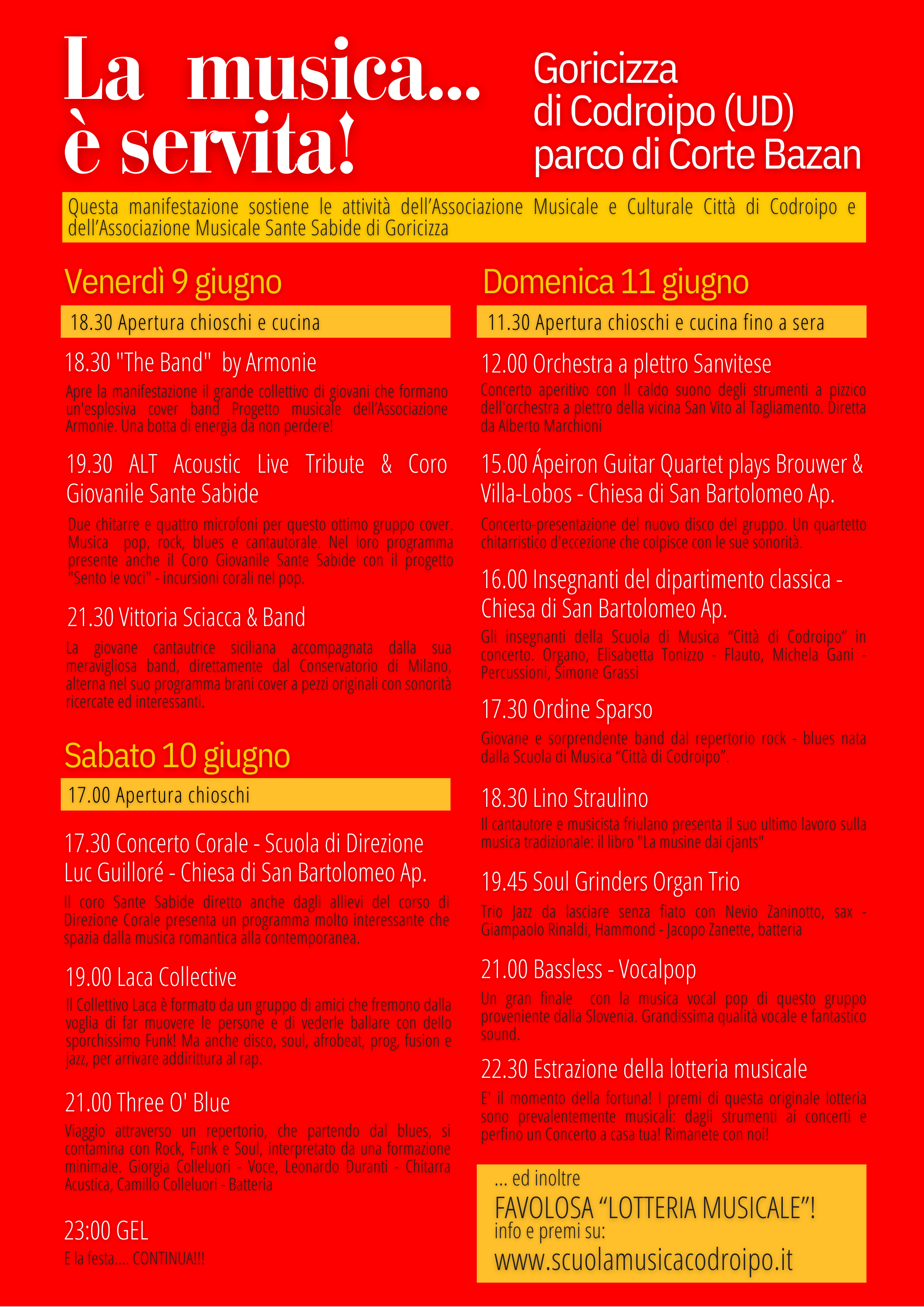 Lotteria di beneficenza a sostegno delle attività dell’Associazione Musicale e Culturale “Città di Codroipo” e dell’Associazione Musicale Sante Sabide di Goricizza.