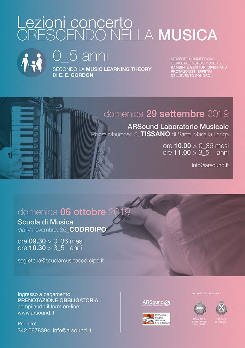 Domenica 6 ottobre 2019 nella sala concerti della scuola di musica si terrà una speciale lezione-concerto dedicata ai bambini da 0 a 5 anni insieme alle loro famiglie.