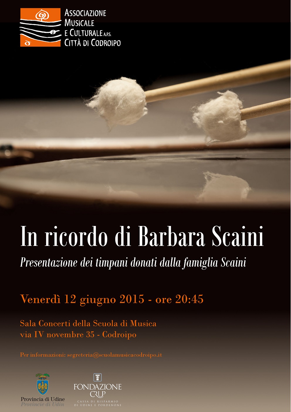 Deprecated: La funzione add_custom_background è deprecata dalla versione 3.4.0! Utilizza al suo posto add_theme_support( 'custom-background', $args ). in /srv/apps/elemind/smc.elemind.com/wp-includes/functions.php on line 6131 Venerdì 12 giugno ore 20.45: in ricordo di Barbara Scaini… presentazione dei timpani donati dalla famiglia. Deprecated: La funzione WP_Dependencies->add_data() è stata chiamata con un argomento deprecato dalla versione 6.9.0! I commenti condizionali di IE sono ignorati da tutti i browser supportati. in /srv/apps/elemind/smc.elemind.com/wp-includes/functions.php on line 6131